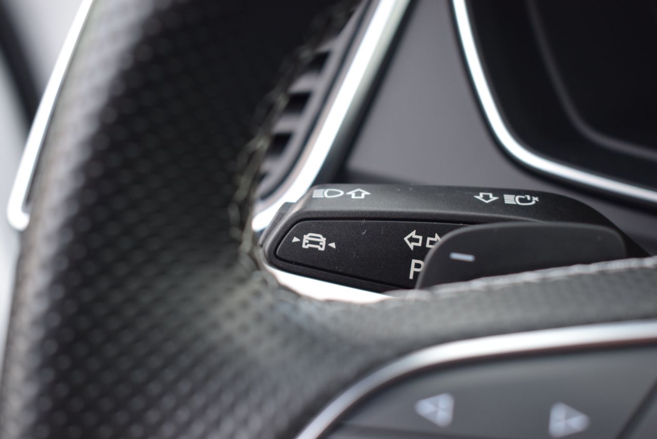 Volante de cuero contorno deportivo, 3 radios, achatado en la parte inferior, con multifunción plus.